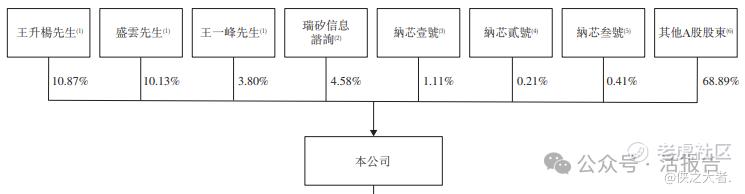 王升杨先生、盛云先生、王一峰先生、瑞硅信息咨询、纳芯壹号、纳芯贰号及纳芯叁号组成公司的单一最大股东集团,合计持股司31.25%。其他A股股东合计持股65.49%。