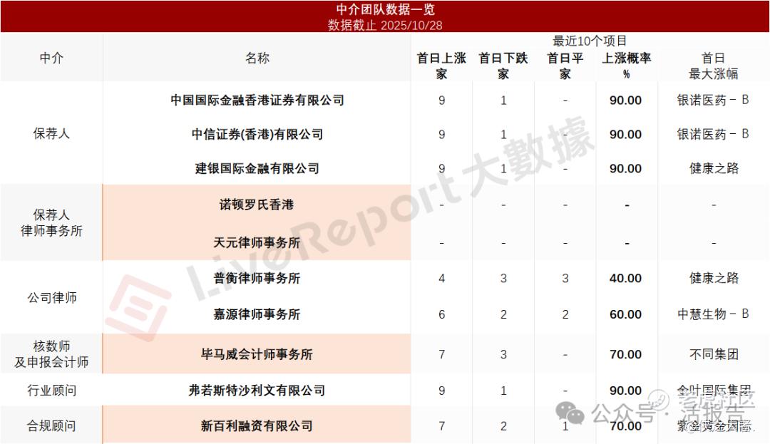 据**大数据统计,纳芯微中介团队共计10家,其中保荐人3家,近10家保荐项目数据表现优异;公司律师共计2家,综合项目数据表现不足。整体而言中介团队历史数据表现尚可。