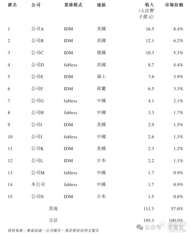 2024年,公司在中国模拟芯片市场排名第14位;在所有fabless公司中排名第6位;以及在中国公司中排名第5位。