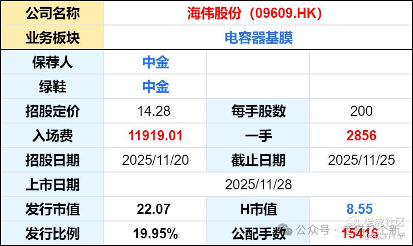 海伟市值22.07亿,PE为23.8,PS为4.8,基膜占比近7成的大东南PE为136,PS为5.1,基膜占比4成的铜峰电子PE为46.6,PS为3.8,而下游薄膜电容器龙头的法拉电子的PE为21.34,PS为4.65,考虑港股折价后海伟≈大东南>法拉>铜峰,只能说略贵,而海伟这次流通8.55亿非常小,不申请全流通的话入通需翻10倍,上市会冲,但入通得慢慢来。