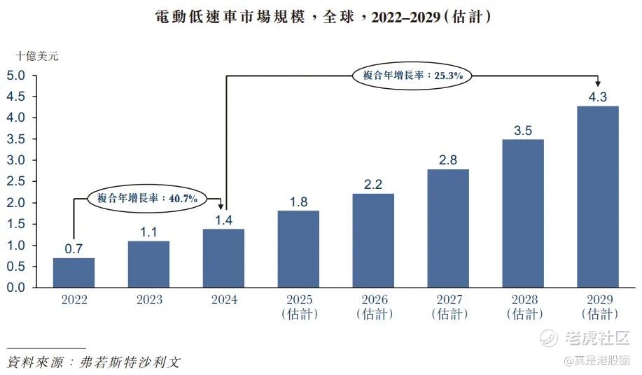 根据弗若斯特沙利文报告,全球电动低速车市场规模从2022年的7.0亿美元增长至2024年的11亿美元,复合年增长率达到40.7%;预计将于2029年在全球达到42.7亿美元,复合年增长率达到25.3%。