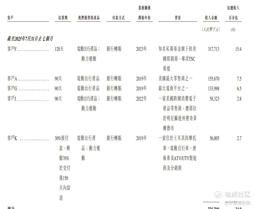 如今,公司已入驻了Target、Bestbuy、Academy、Kohl's等主流商超。这部分客户成为公司销售渠道上不可或缺的一部分。于2022年、2023年及2024年以及截至2025年7月31日止七个月,公司来自五大客户的收入分别占各期间涛涛车业总收入的36.2%、49.7%、48.9%及34.9%。