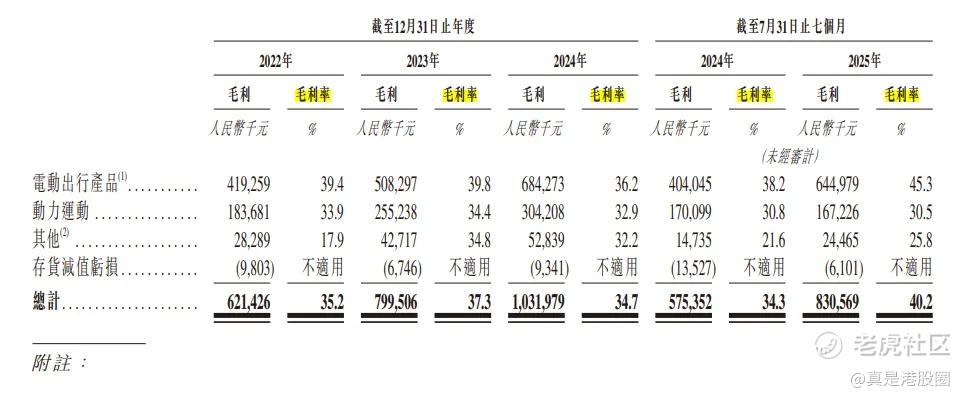 其中电动出行产品是销售主力,在截至2025年7月31日的七个月里贡献了68.9%的收入。更重要的是,这部分收入的毛利率达到45.3%,是其所有产品中利润率最高的。这一收入结构极大程度上助推了公司整体业绩的增长。
