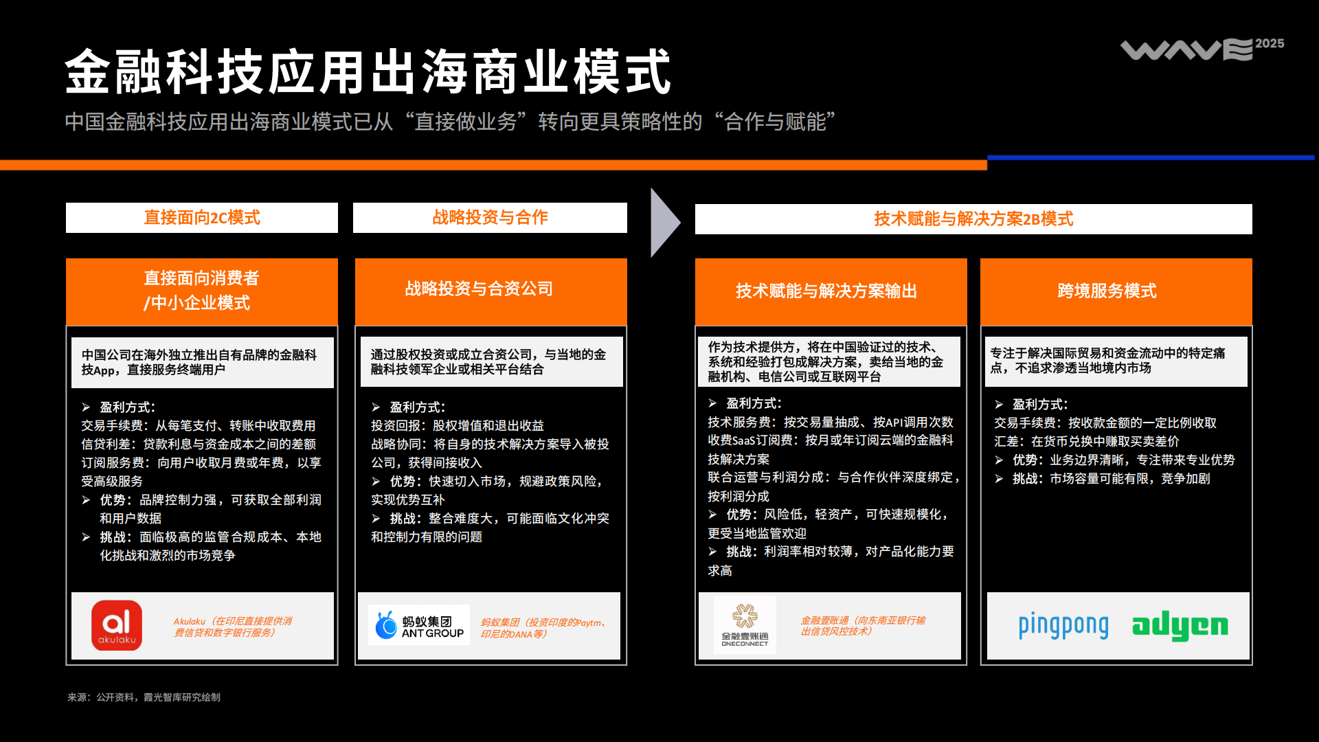 过去中国金融科技企业出海,多是直接在当地做业务,把国内的商业模式复制到海外;这两年它们正在转向更具策略性的合作与赋能的方式。