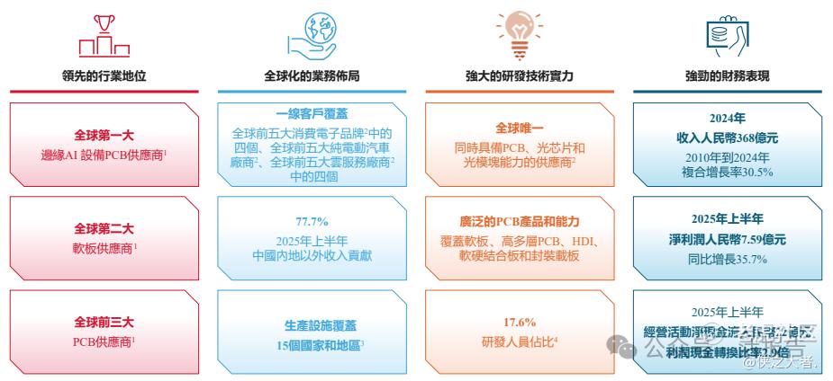 公司是全球第一大边缘AI设备PCB供应商,2024年收入367.7亿元,净利润10.85亿元;2025年上半年收入169.55亿元,净利润7.59亿元,同比增长36%。
