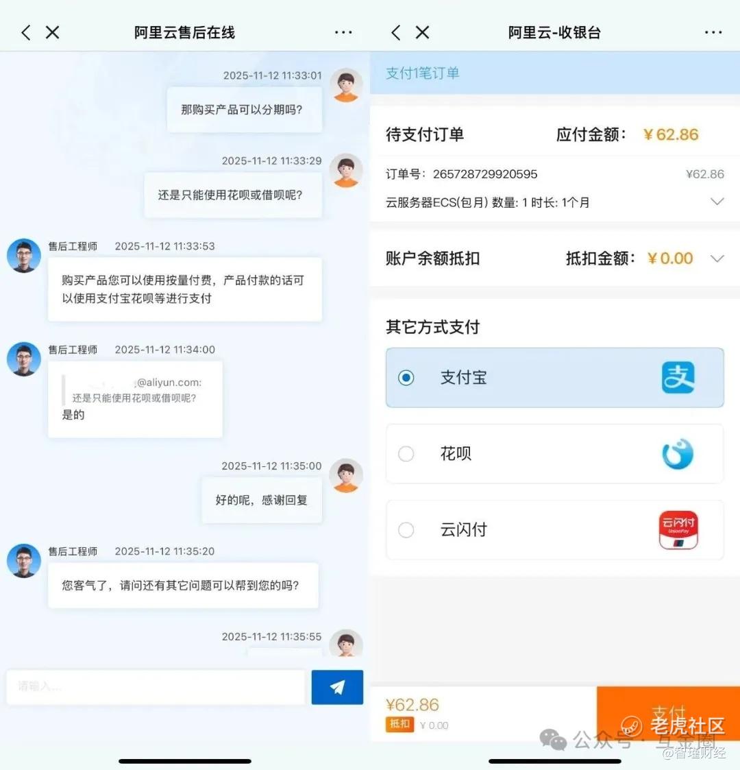 在“阿里云”App和官网上均未发现有助贷/导流入口,客服回复“阿里云”无借贷服务,但是购买“阿里云”的产品可以使用花呗支付。