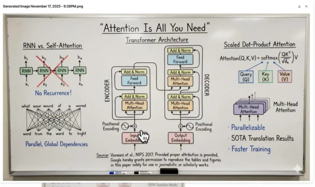 11月20日推出Nano Banana Pro(Gemini 3 Pro Image),这是当前最强的AI图像生成/编辑工具。市场评价几乎一边倒地赞誉,支持高达14张参考图融合、5人一致性保持、4K分辨率、精确文字渲染(多语言支持,错误率仅8% vs OpenAI 38%)。专业级控制相机角度、光照、景深、色彩分级随意调节,结合实时搜索,可生成带真实数据的图表/海报。