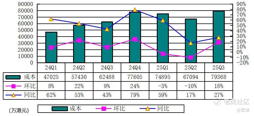 富途控股2025年第三季度成本为7.94亿港元(约1亿美元),较上年同期的6.25亿港元增长27%。