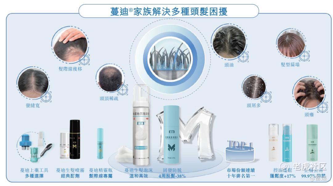 蔓迪国际的旗舰产品为蔓迪®系列米诺地尔类脱发治疗产品,在头发健康管理领域,脱发问题由小众群体的焦虑演变为受到广泛关注的健康问题。