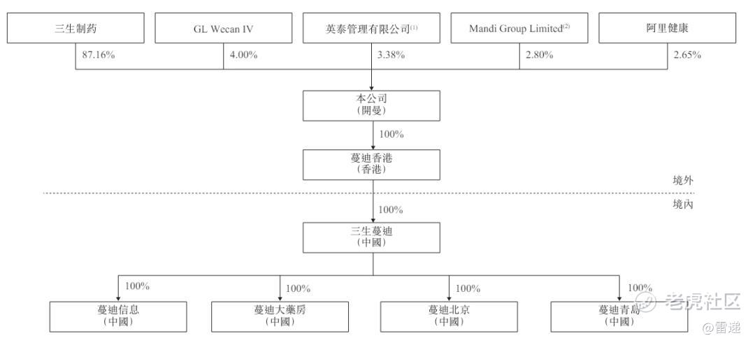IPO前,三生制药持股为87.16%,GL Wecan IV持股为4%,英泰管理有限公司持股为3.38%,Mandi Group持股2.8%,阿里健康持股为2.65%。