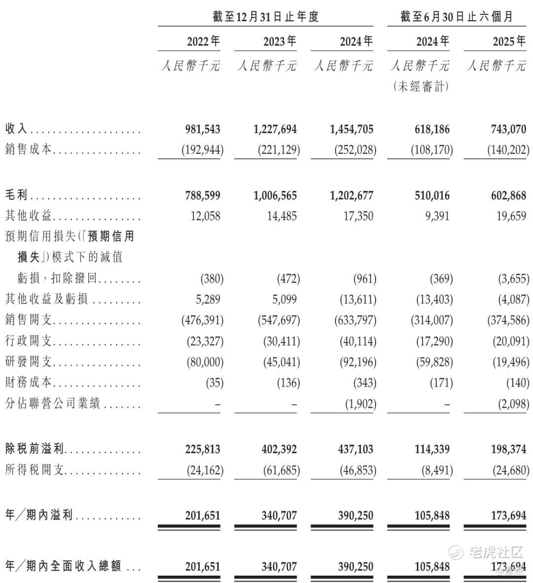 招股书显示,蔓迪国际2022年、2023年、2024年营收分别为9.82亿元、12.28亿元、14.55亿元;毛利分别为7.89亿、10亿元、12亿元;期内利润分别为2亿元、3.41亿元、3.9亿元。