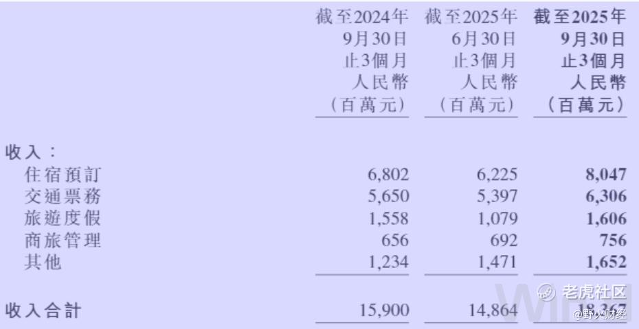 住宿预订收入80亿元,同比增长18%;交通票务收入63亿元,增长12%;度假旅游收入16亿元,增长3%;商旅管理大约7.6亿元,增长15%。