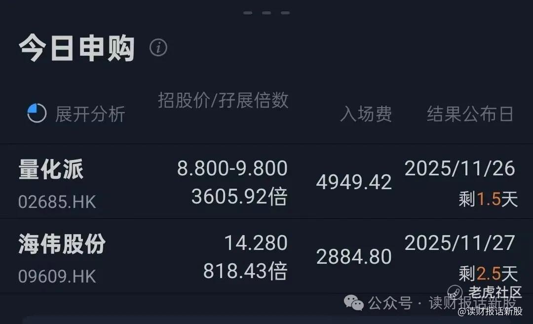 明天早上很难中的量化派 $量化派(02685)$ 就要截止认购了