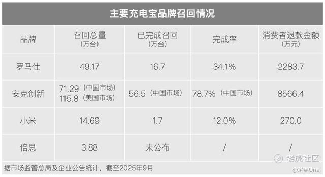 随后的召回过程,暴露出罗马仕在危机管理上的全面失控:多家快递公司拒收、罗马仕建议用户“盐水浸泡”处理、电商平台因“保证金余额不足”导致退款排队超17万……到9月,其召回完成率仅34.1%,低于另一个“召回大户”安克创新(78.7%)。