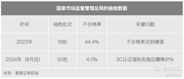 而国家市场监督管理总局的抽检数据更反映了问题的严重性:充电宝产品不合格率在2023年达到44.4%;3C认证强制实施后,不合格率降至4.0%。