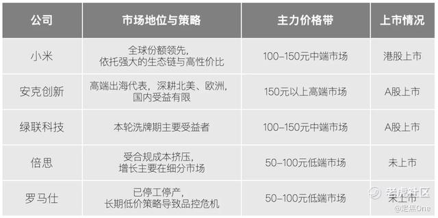 百元以下市场(曾由罗马仕、倍思主导)萎缩;100-150元中端市场(小米、绿联科技)扩容;150元以上高端市场(安克、**)格局相对稳定。