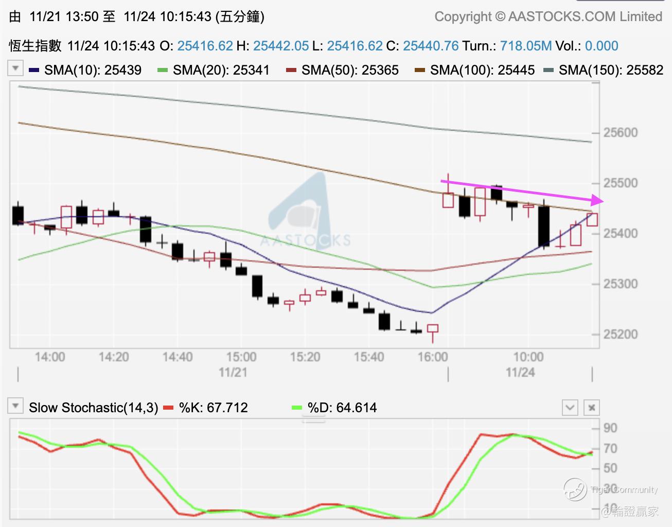 以Patreon出文后再如常用10分钟时间去睇文嘅话,即大约10点25分,呢个时间再睇返走势图,指数已经上到今朝开市位并遇阻重新向下,连同借埋10线唔过再碌落去,(55659)出得场。