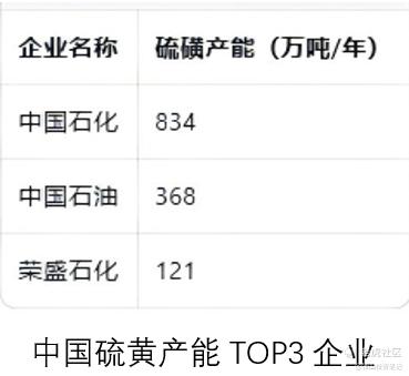 据统计,国内硫黄总产能约1680万吨/年,产能分布呈现高度集中特征,中国石化、中国石油和荣盛石化是国内硫黄产能TOP3企业,分别拥有834万吨、368万吨和121万吨产能,合计占据全国70%以上的市场份额。