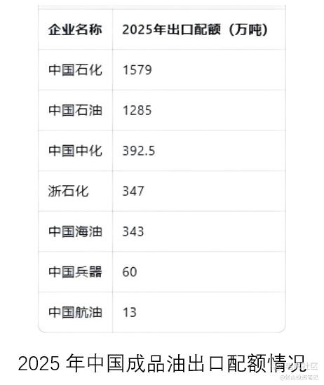 从企业资质看,中国成品油出口仍以国企为主导,中国石化(1579万吨)、中国石油(1285万吨)占据成品油出口市场主要份额。其中,荣盛石化是目前国内唯一具备成品油出口资质的民营炼化企业,其旗下子公司浙石化2025年获得成品油出口配额347万吨。