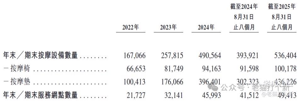 【行业】按摩椅服务在22年新冠时期大幅度承压,在23年后恢复增长,因此目前招股书统计的22-24年增长非常迅猛,这个水分还是有的。