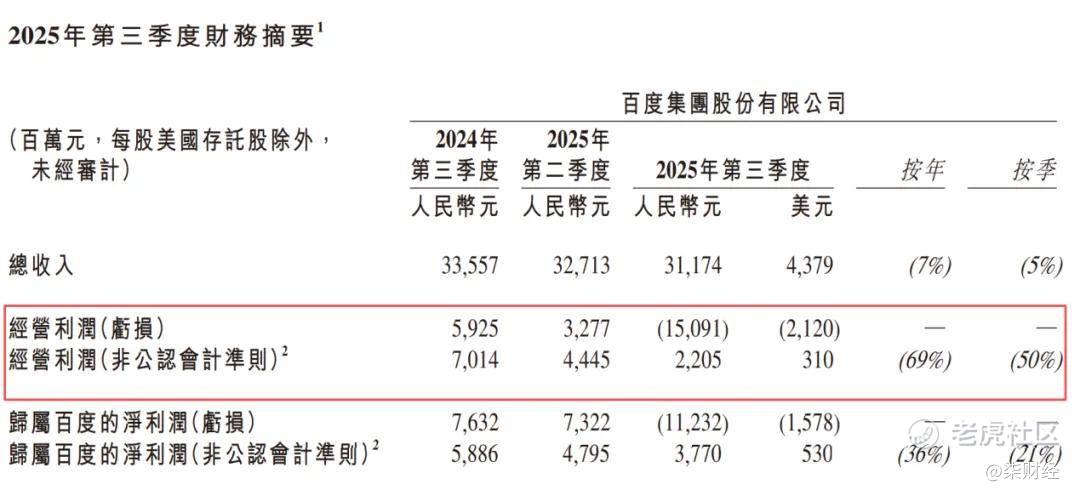 据最新交出的“成绩单”,2025年第三季度,公司营收312亿元,同比下滑7%,创下有史以来单季最大跌幅;净亏损112.32亿元,上年同期则为盈利76.32亿元。 $百度(BIDU)$