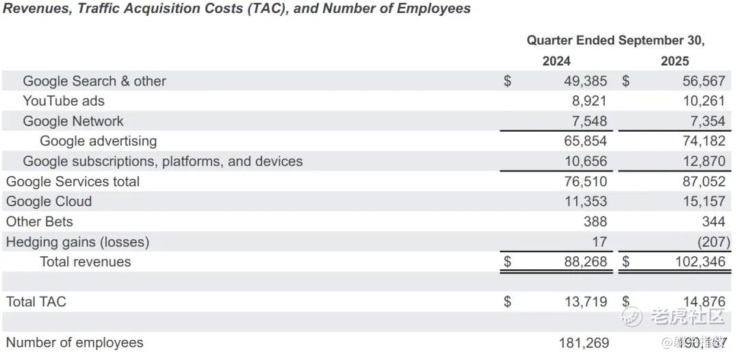 从五年前的500亿美元季度营收到如今的1020亿美元,五年内实现了翻倍,展现出大型科技公司罕见的持续增长能力,是谷歌各业务板块协同增长的结果。