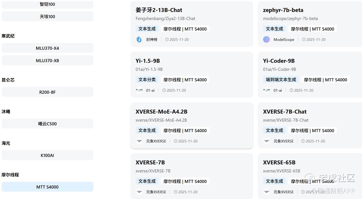 智通财经APP获悉,范式智能近日宣布,「信创模盒」ModelHub XC已完成108个主流AI模型在摩尔线程GPU上的适配认证,涵盖文本生成、视觉理解、多模态问答等多种任务类型,预计未来半年内将扩展至千量级,为国产算力生态注入持续动能。