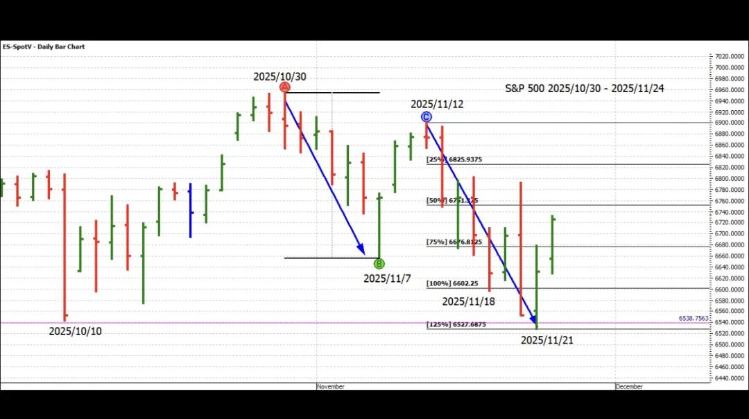 →标普500的下跌第二浪在150%阻力位止跌反弹。