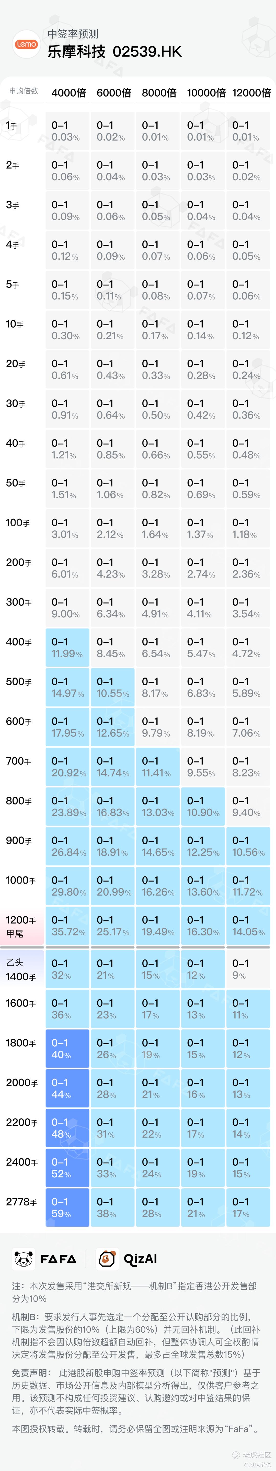 本次乐摩科技采用机制B,回拨10%;全球发售555.56万股,香港公开发售占55.56万股,一手是100股,甲乙共计5556手,少,又是全员抽奖的了!!甲尾需要48万本金,乙头需要56万本金,顶头只需112万本金,估计上顶头的人也很多!等海伟股份出结果,资金释放之后预计最终孖展热度能到6000-7000倍。