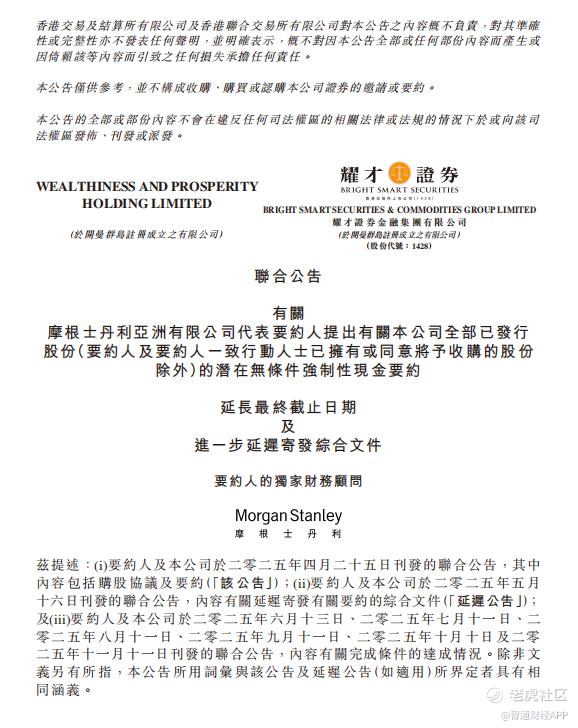2025年4月,耀才证券金融公告表示,蚂蚁集团全资子公司上海云进计划以3.28港元/股的价格,收购耀才证券控股股东新长明控股持有的50.55%股份,总对价约28.14亿港元。随后在11月11日,耀才证券金融再度公告表示,要约人正考虑可能延长最终截止日期。