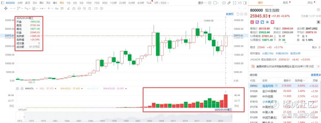 临近年末尾声,回看今年港股的表现还是很强的,恒指涨幅为30%,跑赢年初时调整剧烈的标普500和纳指。