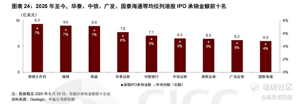 例如,中金公司在港股IPO的市占率超18%,位居前列;广发证券投行业务储备项目达数十单,其中60-70%为保荐项目,主要为中型 deals,显示其在项目获取及执行上的优势。此外,国泰君安国际港股佣金收入同比增长131%,新增客户数超2024年全年,体现其在客户拓展及市场份额提升上的成效。