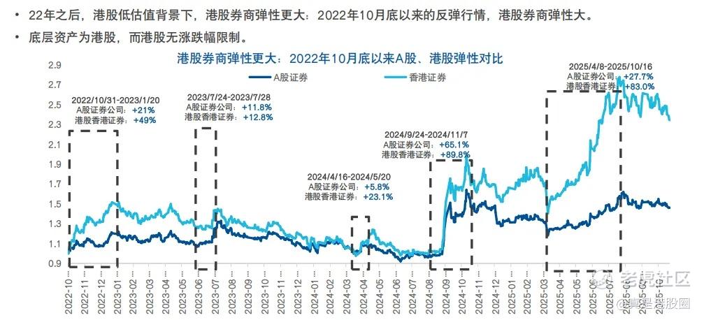 从过往数据来看,2022年后港股券商的弹性优于A股,且港股券商估值更低。