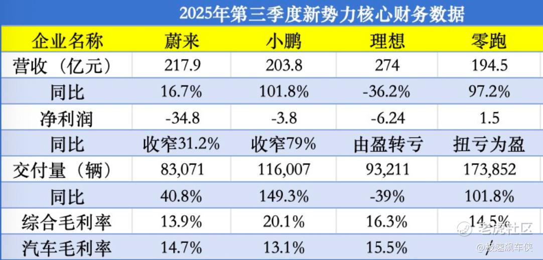 2025年第三季度造车新势力财报陆续出炉,头部企业呈现“有人领跑、有人承压”的分化格局,盈利与转型成为核心关键词。