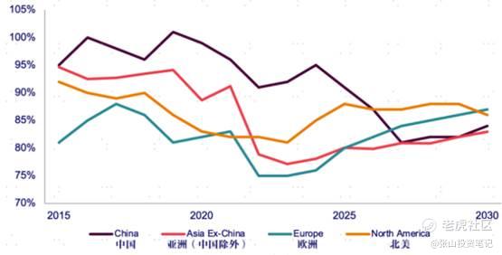 图1 全球分地区乙烯开工率