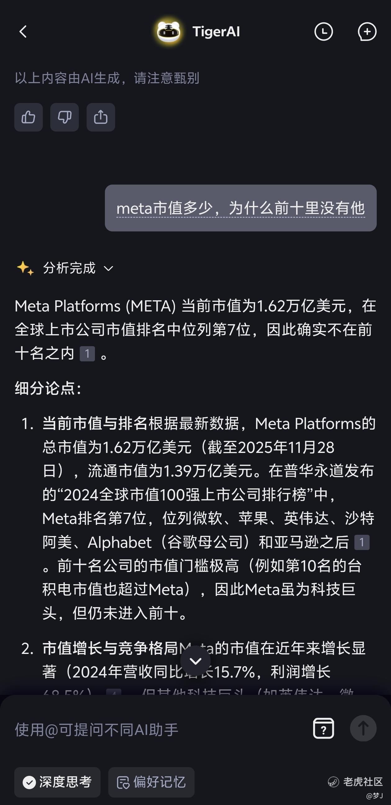 老虎这个智能ai把我整笑,连市值前十的公司都能给错?🤣🤣