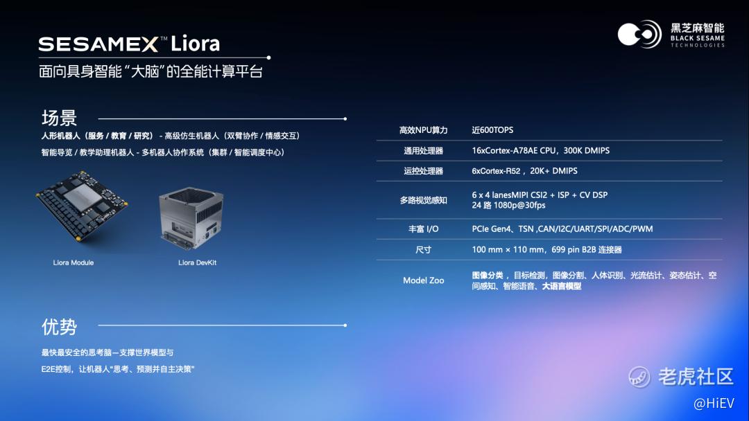 往更高一层看,黑芝麻智能与武汉大学团队在 Liora 平台上探索的人形机器人方案,则开始引入世界模型与端到端控制,让机器人在面对开放环境时具备更强的整体性理解与决策能力。这里的 SesameX,不再只是执行预设动作,而是成为承载“世界观”的计算基础。