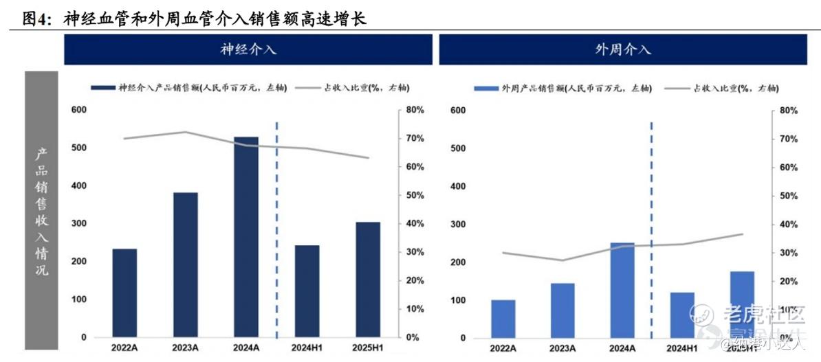 神经介入产品上半年收入3.05亿元,占63%;外周介入收入1.77亿元,增速更快,达到46%。这两个领域国产化率都还很低(神经20%,外周不到15%),他们靠密集的产品线和平台快速迭代产品能力,硬是在外资占主导的市场里撕开了口子。