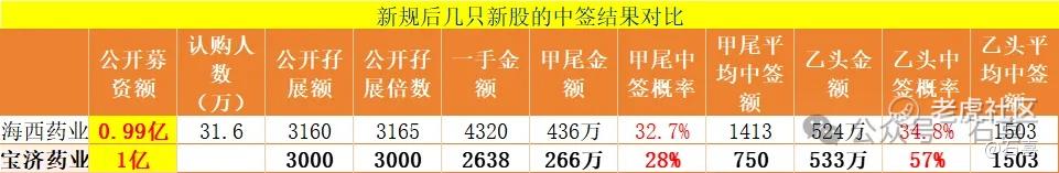 如果宝济药业最终孖展额在3000亿(这是初步预测,后面还会根据情况重新预测),直接把海西药业的中签结果数据扒下来就行了,乙头平均中签额为1503元,中签概率为57%,甲尾受分配影响大,我暂时按和乙头一样的中签率(不是中签概率)来预测,则甲尾平均中签额为750元,中签概率为28%。