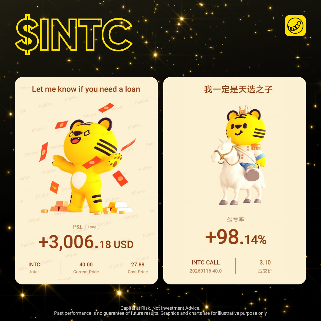 最后把问题抛给大家:你怎么看英特尔这轮反弹?你是已经成功抄到底,还是正准备做下一步布局?如果你也在英特尔这只股票或相关期权上有不错收益,欢迎在评论区晒出你的持仓和收益截图,晒单关联主题“晒晒更赚钱”成为下期的晒单王。