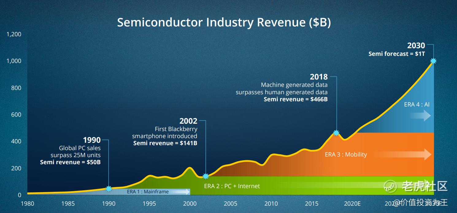 在AI爆发前,整个半导体市场的规模不过在5000亿美元左右,业内本来预计2030年时,市场规模才增加至1万亿: