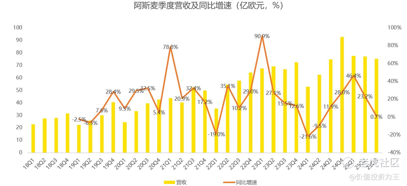 像阿斯麦,今年三季度的营收增速才0.7%,预计四季度的营收在95亿欧元左右,同比增速也只有2.6%: