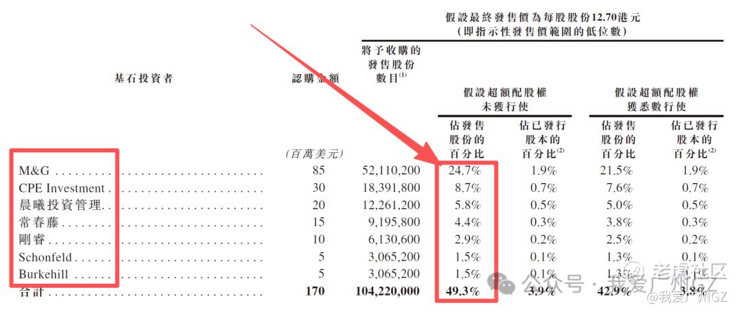 2、基石:占比49.3%,M&G、CPE、晨曦投资、常春藤,