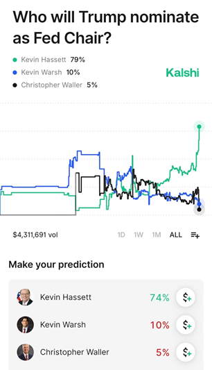 他在一次公开场合表示,将在“明年年初”宣布下一任美联储主席的人选。虽然话说得不算明,但外界普遍认为,他是在为现任国家经济委员会主任 凯文·哈塞特(Kevin Hassett)“暖场” —— 这位长期主张激进降息的经济学家,早已是舆论眼中的头号热门接班人。