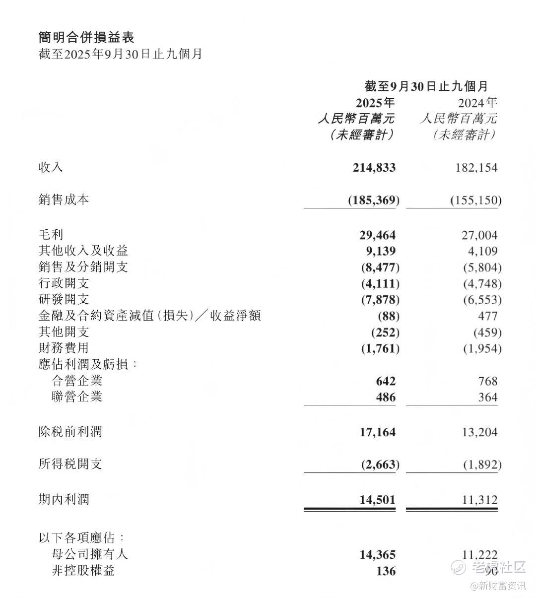 先来看奇瑞汽车的财务数据,2025年前三季度财报:营收约 2148.33 亿元 ,同比增长 17.94%。归母净利润达到 143.65 亿元 ,同比增长 28% 。这样的财务数据十分亮眼,营收的增长意味着市场对其产品的需求旺盛,销售规模不断扩大。归母净利润的大幅增长更是体现了其盈利能力的强劲,在激烈的市场竞争中,不仅能赚吆喝,更能实实在在地赚钱。
