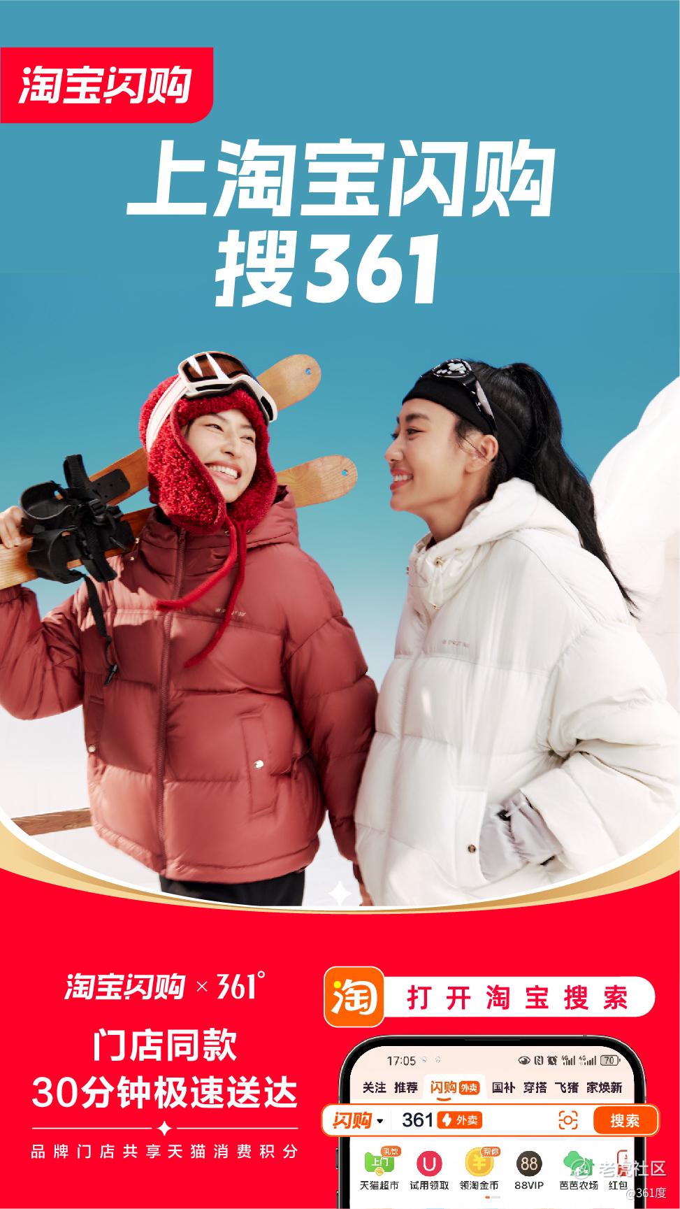 即日起,打开手机淘宝闪购搜索“361”,即可解锁重庆专属优惠,抢先体验极速送达的运动购物新方式。后续更多城市上线信息,敬请关注361°官方微博、微信公众号,让我们一起奔赴热爱,即刻运动!