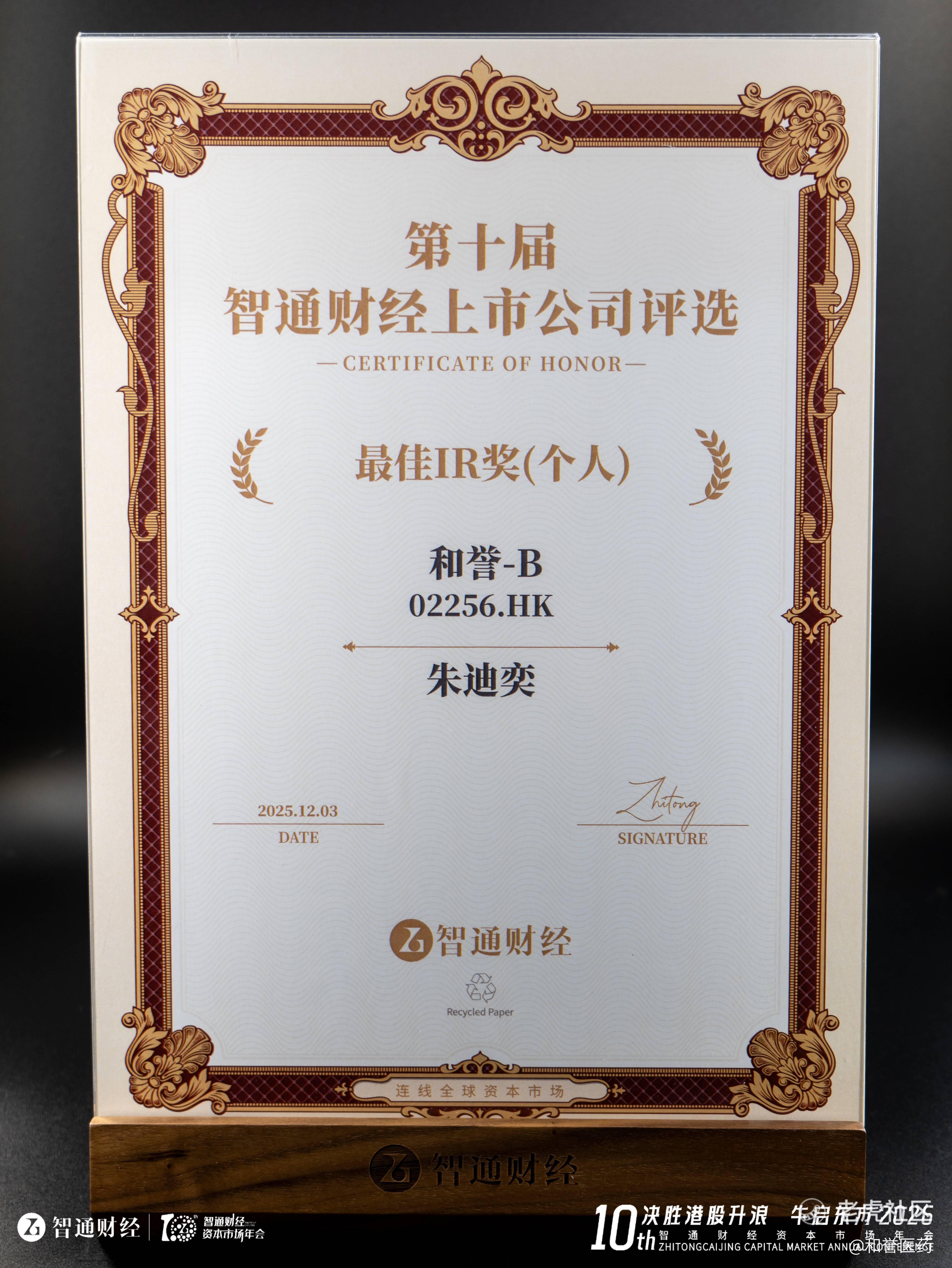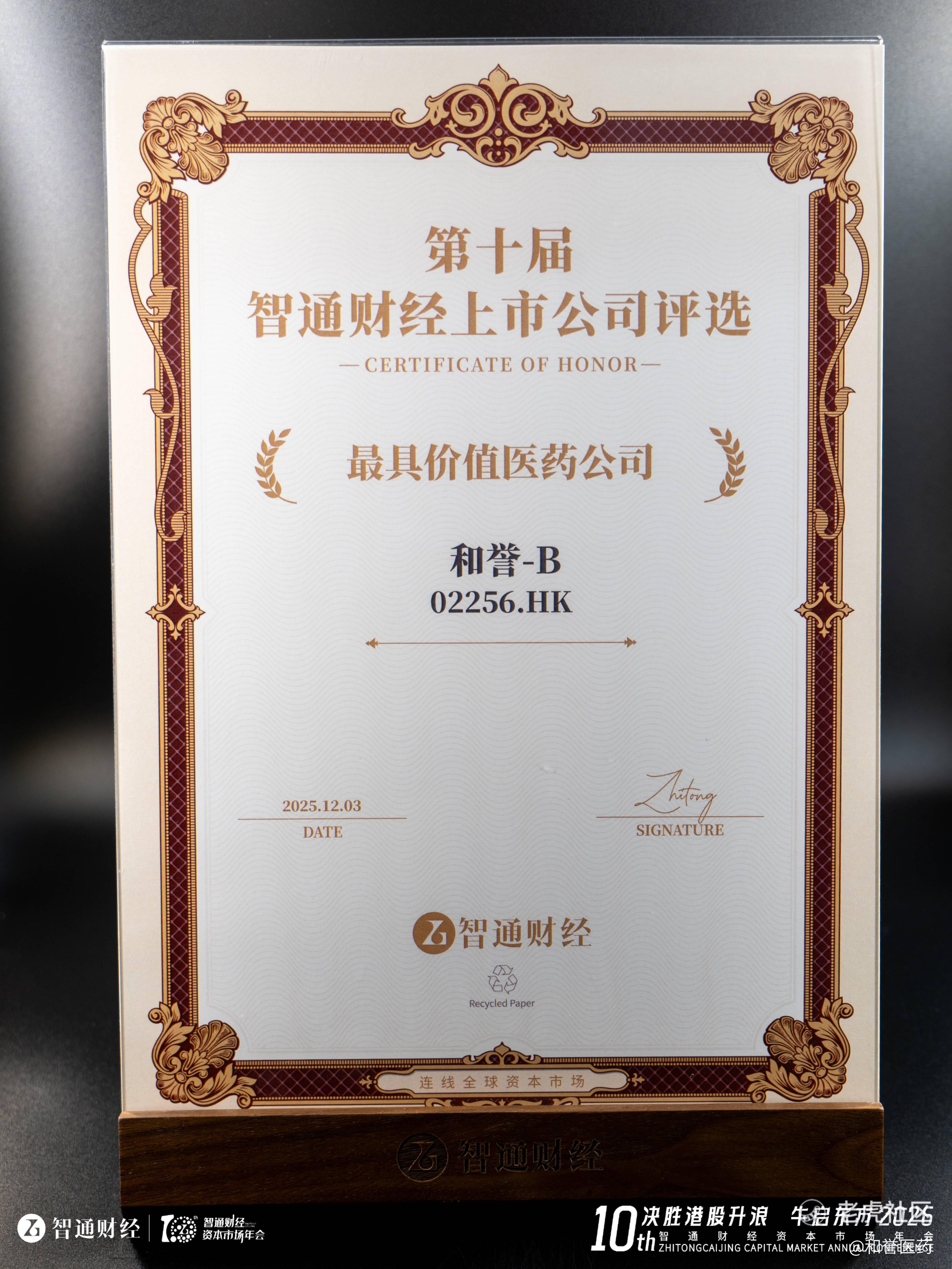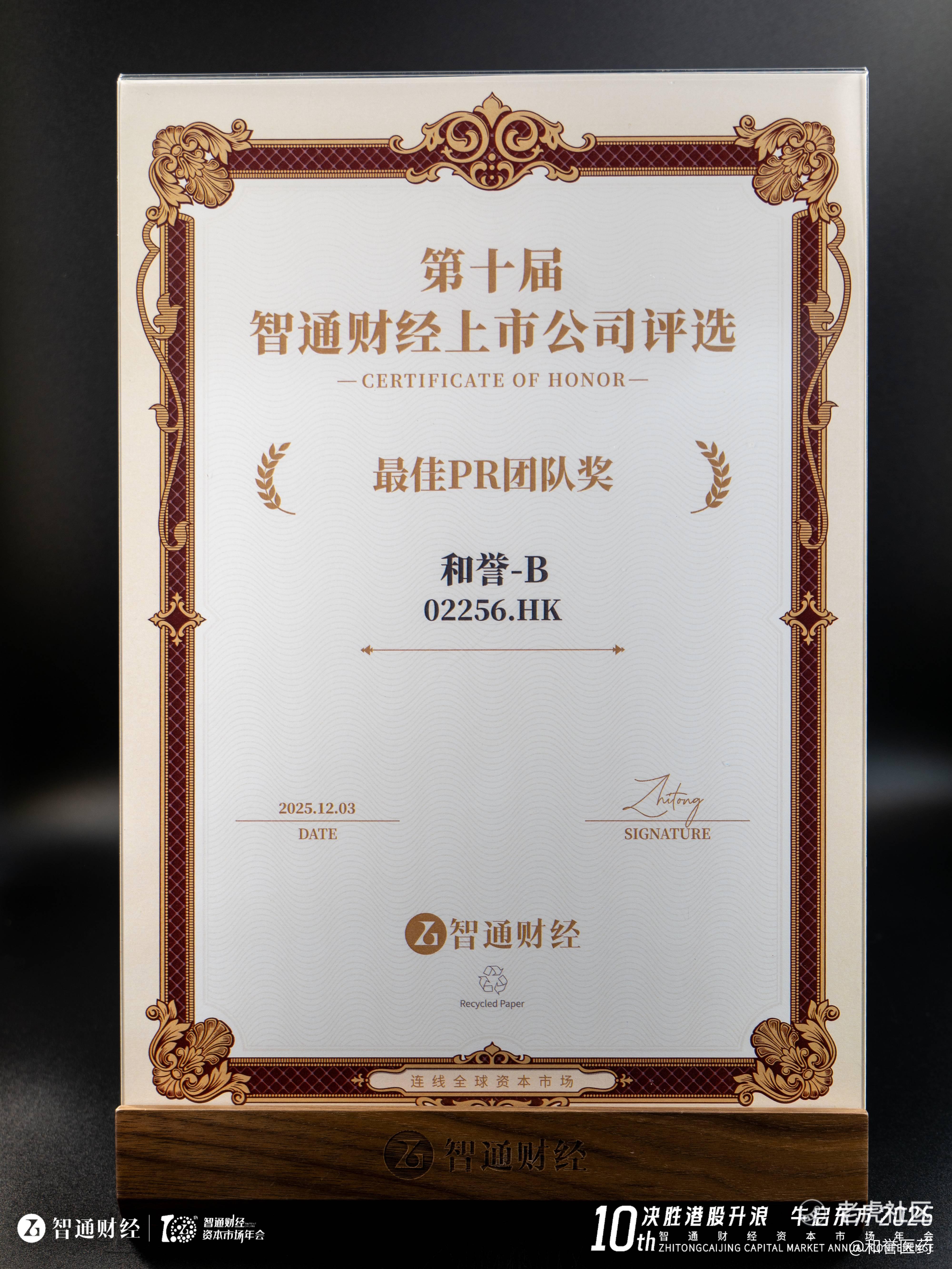 2025年12月3日, “第十届智通财经资本市场年会暨上市公司颁奖盛典”在深圳隆重举行。$和誉-B(02256)$ 凭借卓越的创新实力与市场表现,一举斩获“最具价值医药公司”“最佳PR团队”和“最佳IR”三大重磅奖项,充分展现了资本市场对和誉医药创新实力的高度认可,以及公司在市场沟通传播方面的卓越成效。