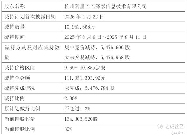 需要注意的是,阿里还有另一条主线,即减持上市公司股份。2025年3月,阿里通过杭州灏月减持圆通不超过2%股份,套现约9.51亿元;10月再次计划减持圆通2%股份,预计可套现约11.7亿元。