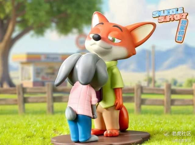 比如52TOYS,就把“狐兔”互动名场面转化为“最佳拍档”系列盲盒,其中“甜蜜倚靠”再现尼克对陷入自责的朱迪说“好了,过来抱抱”的一幕。该系列成为天猫盲盒热销榜、抖音商场公仔摆件人气榜TOP1。