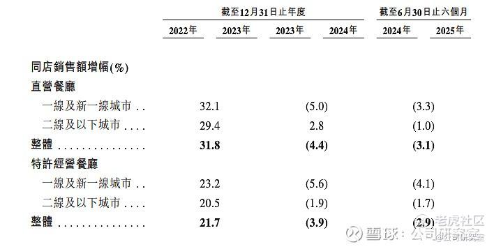 根据招股书,2022年到2024年及2025年上半年,一线及新一线城市的直营餐厅经营利润率分别为-8.4%、12.2%、12.6%、14.1%,二线及以下城市的经营利润分别为10.8%、17.3%、19.3%、19.8%。